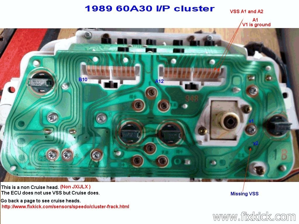 One guy wants to put a 89 head in a 1991 Kick. only 2 of 4 heads have VSS clickers. JLX has them. The other models may not. The clicker is for Cruise only module and not ECU, but if present , JLX it is , then will work on all 91+ cars with the same pin count. the Yellow wire is VSS