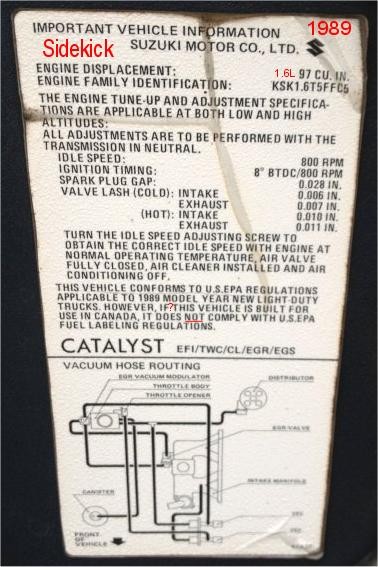 1989 Sidekick (fed?) Note the odd NOT Canada words, real odd.!