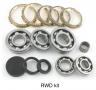 So I compare the pictures and could tell the the sychros are the same and I could find at least 4 bearing matching in each kit. the seals, only one looks the same 2 look different.(no big deal) Also the 4 bearings in 4x4 kit have the c rings on where in RWD kit just one is showing having it. the 4x4 kit also comes with one more bearing than RWD kit.